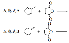 【已刪除】四、反應式 A 和反應式 B 何者較易進行狄-阿反應(Diels-Alder reaction)?並說明反 應性差異的理由。(10 分)