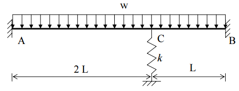 【已刪除】三、如圖所示梁結構,支承 C 處為彈性支承。應用直接勁度法分析求得 C 點之垂直位移 與轉角,並求固接端 A、B 之反力矩。各桿件之 E、I 均相同。
