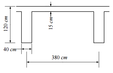 【已刪除】三、如圖示位於梁端部負彎矩區的 T 型斷面,梁跨度為 12 m,梁間中心距為 3.8 m, 擬採 10-D25 主筋及 D13 肋筋,試依據土木 401-96 規範對裂紋控制規定配置主筋 並繪製斷面配筋圖。