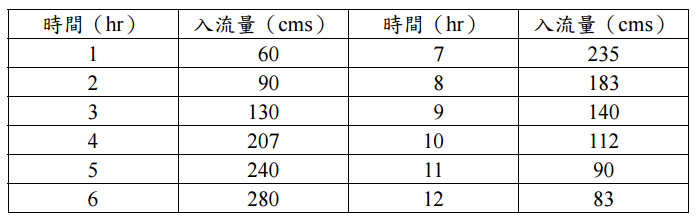 【已刪除】三、已知某河川之入流量資料如下表所示: