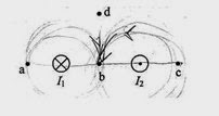 15.如图,两根相互平行的长直导线分别通有方向相反的电流 和 ,且 ;a、b、c、d为导线某一横截面所在平面内的四点,且a、b、c与两导线共面;b点在两导线之间,b、d的连线与导线所在平面垂直。磁感应强度可能为零的点是 (A)a点 (B)b点 (C)c点 (D)d点