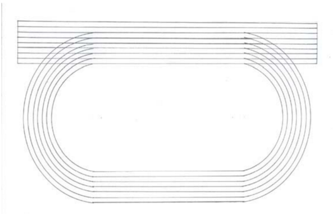 【已刪除】3. 本校操場為300公尺半圓式紅土跑道,每年校慶均需劃田徑場地以利運動會比賽進行,假 設今年徑賽項目有100m、200m、400m接、800m、1500m(800m、1500m不分道起跑),請於 答案卷圖(一)操場平面圖畫出上述徑賽場地及說明測量方法。(測量工具有:測距輪、 捲尺)(20%)