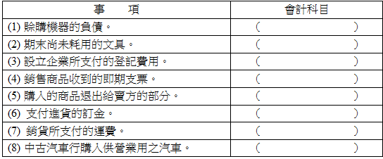 【已刪除】3. 試寫出下列會計科目:(每格1分、共8分)