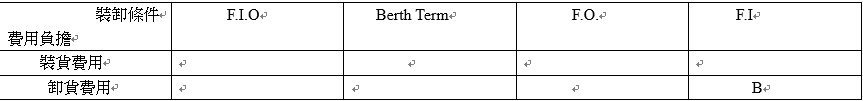 【已刪除】8.請寫出以下各項費用由貨主【A】或船方【B】負擔,請寫上代號【A】【B】於下列空格中: