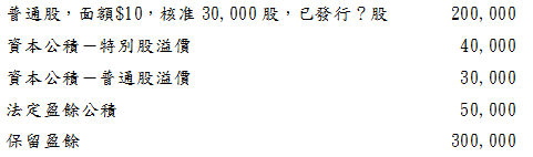 【已刪除】8.大南公司99年底之股東權益內容如下:公司已經三年(含99年度)未發放股利, 特別股為非累積、清算價格$11,預計不發放今年之股利,試計算99年底普通股 之每股帳面價值。