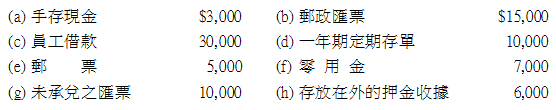 【已刪除】1.本公司之「現金」帳戶包含下列項目:請寫出更正分錄。