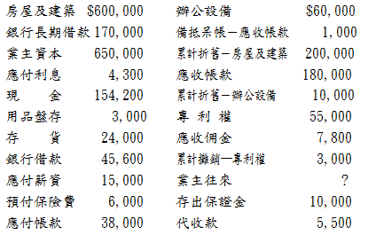 【已刪除】1.雅各商店01年底調整後各帳戶餘額及相關資料如下,試為該商店編製01年底資產負債表。(本期淨利或淨損轉入業主往來)