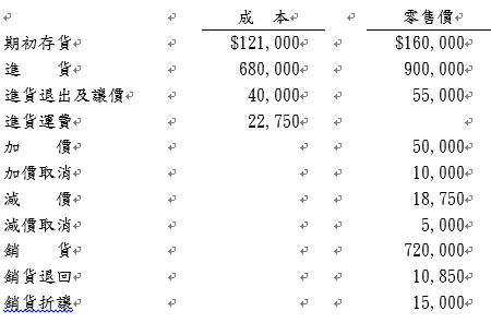 【已刪除】5.採平均成本零售價法估計期末存貨,年底實地盤點,發現存貨之零售價共計 $248,900,該年度有關進銷資料如下:
