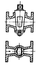 18 如圖所示,垂直於管路的圓錐體上設一通孔,旋轉圓錐體本身便可控制流量的閥,稱為: