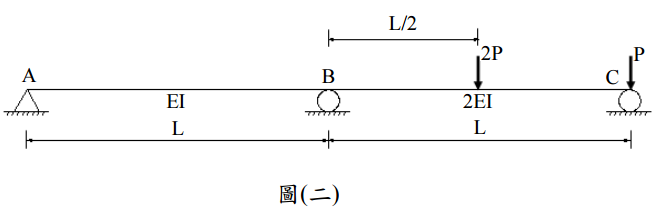 【已刪除】二、試求圖(二)結構中 A, B 及 C 點之反力。(25 分)