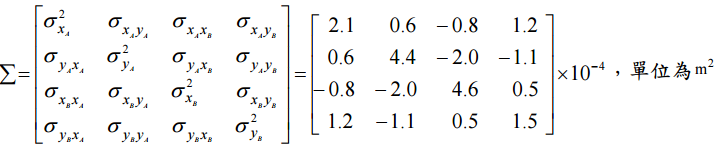 【已刪除】四、已知 A、B 兩點坐標的變方-協變方矩陣(variance-covariance matrix)如下: