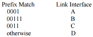 長前綴匹配(longest prefix matching)的演算法則,且其設定的轉送表(forwarding