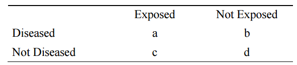 【已刪除】四、請說明什麼是職業流行病學(occupational epidemiology)?(5 分)請問下表是屬 於何種流行病學研究設計所取得的數據?(5 分)請用表裡面的英文字寫出相對風 險(relative risk)的公式。(10 分)