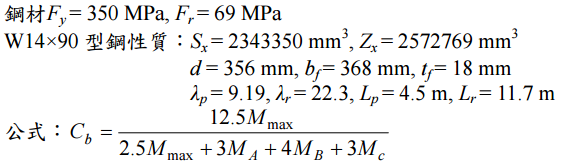 (kN/m),利用極限設計法(LRFD)設 計此梁強軸彎矩強度所能承載之最大活載重W
