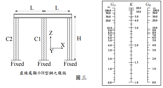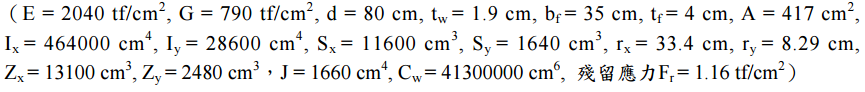【已刪除】四、使用極限設計法(LRFD),計算圖三柱1(C1)之設計極限載重。圖中柱為 H800×350×19×40(斷面資料如第三題),F