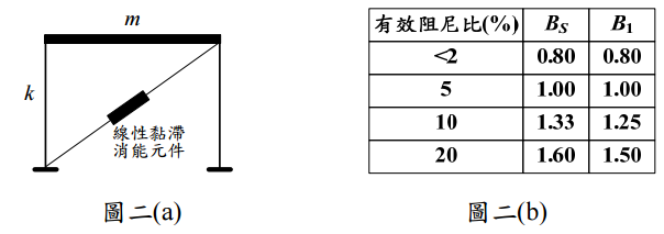 ,並假設與線性黏滯消能元件相接之斜撐勁度夠大而可 忽略其軸向變形),並承受同第一題所述之地震作用(屋架結構能維持在線彈性),而 短週期與長週期結構之阻尼比修正係數B