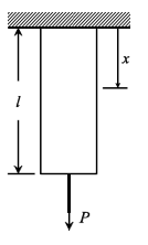 【已刪除】三、如圖示,考慮一單位重為 γ,截面積為 A,長為 l 之懸掛棒,其底端處承受外力 P 之 載重。試求該懸掛棒任意橫截面處之應力為何?(25 分)