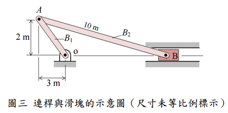 以o為圓心,以 10 rad/sec的角速度順時針方向旋轉,請計算滑塊B在此瞬 B 間的速度。(25 分)