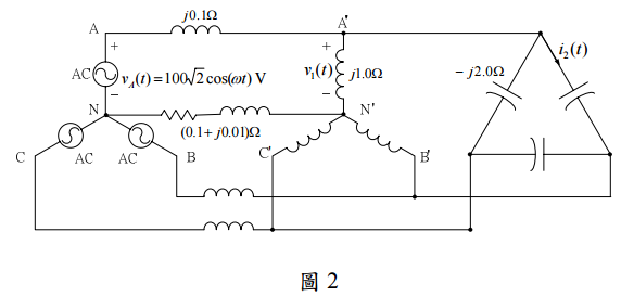 【已刪除】三、圖 2 所示為一平衡三相系統,試求圖中v