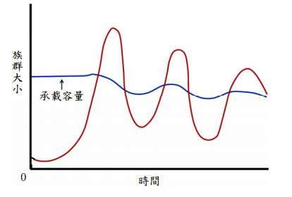 【已刪除】四、請參考附圖從學理分析特定生態系內物種族群消長與承載容量的關係。(20 分) 族群大小0承載容量時間