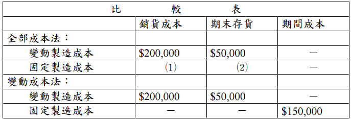 ⑵若該月份營業淨利有$70,000,則製成品期初存貨應有多少?(10 分)