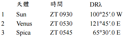 【已刪除】五、1990 年 5 月 23 日測下列星體,求這些星體之 GP 經緯度(請參考附表)。(20 分)