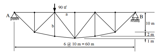 【已刪除】三、桁架如圖所示,在此荷載條件下,試求此桿件 a 及 b 之內力。(25 分)