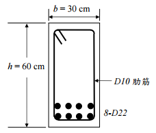 【已刪除】一、一矩形梁寬b = 30 cm,深度h = 60 cm,如圖所示,忽略斷面上方縱向受壓鋼筋,下 方拉力筋為 8-D22 採雙層排列,肋筋為D10,鋼筋保護層及上下層間距均依規範最 小值之規定。試求此斷面所能提供之設計彎矩φM