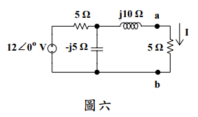 【已刪除】五、試求圖六 a、b 兩端點左側電路之戴維寧等效電路及電流相量 I 之值。(20 分)