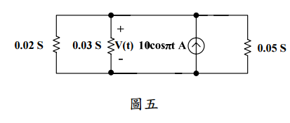 【已刪除】四、試求圖五中,電壓 V(t)之值為多少?(20 分)