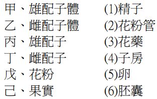 10. 開花植物生殖構造如下列敘述,在左右配對的可能關係中,何者正確?