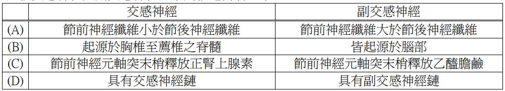 12. 比較交感神經與副交感神經,下列敘述何者正確? (A)(B)(C)(D)