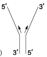 13. 下圖為 DNA 分子拉直後之模式圖,當進行半保留複製時,三磷酸核 依次配對上去,下列何者表 示 DNA 模板股解開部分,「三磷酸核 」配對上去時正確之配對順序? (A)(B)(C)(D)