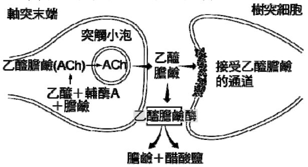 (A)是一種感覺神經衝動傳導物 (B)可促進神經衝動的物質 (C)可分解乙醯膽鹼 (D)可使膽鹼和 醋酸鹽合成乙醯膽鹼 (E)有些有機農藥的作用是會抑制乙醯膽鹼酶分解乙醯膽鹼的活性。