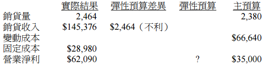 11 甲公司相關預算資料列示如下,其彈性預算中之營業淨利金額(即下表中?)應為: