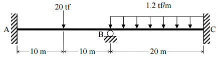 【已刪除】一、下圖所示兩跨度連續梁在圖示載重下,梁在 A、B 及 C 支承點之負彎矩分別為 、 及 − 。試求三個支承點垂直方向的反力,並繪出此梁 之剪力圖及彎矩圖。(25 分)