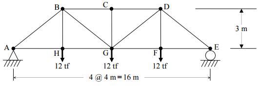【已刪除】二、試繪出下圖所示桁架 BG 桿件及 HG 桿件之影響線。並用影響線求 BG 桿件及 HG 桿 件在圖示載重作用下之內力。(以節點法或截面法分析不予計分)(25 分)