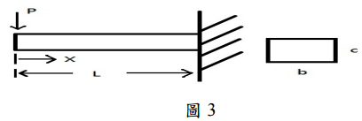 【已刪除】三、一根懸臂樑尾端承受一外力P如圖 3 所示。此懸臂樑的長度為L,寬度為b,高度為c , 楊氏係數為E 。試問此懸臂樑所具有的應變能為多少?(5 分)尾端的向下位移為多少? (5 分)且此樑的最大應力發生於何處?(5 分)並且最大應力值為多少?(5 分)