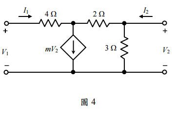 【已刪除】四、若 m = 2/3,求圖 4 電路之雙埠 Z 參數。(20 分)
