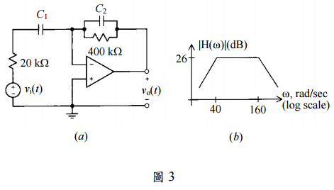 【已刪除】三、圖 3(a)中電路H(ω)=vo/vi,若其波德圖(Bode Plot)如(b)所示,求C