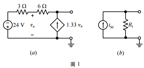 【已刪除】一、把圖 1(a)的電路轉換成如(b)的諾頓等效電路。(求解