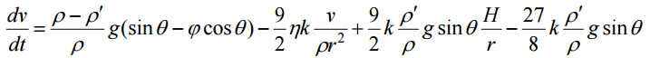上式中,v =礦粒運動速度;t =時間;ρ =礦粒密度;ρ′ =介質密度(水=1 g/cm