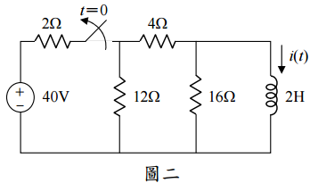 【已刪除】二、圖二中,電路之開關(switch)已經關閉很長時間並達穩態。在時間