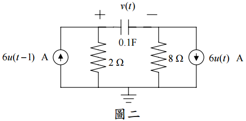 【已刪除】二、求圖二電路中 t > 0 之 v(