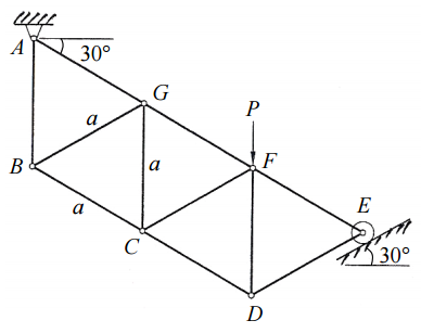 【已刪除】一、如圖所示之桁架是由長度為 a 的桿件組成,試求 EF 桿的內力。(25 分)