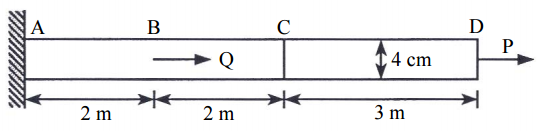 【已刪除】二、有一直徑為 4 cm之圓形斷面桿件ABCD於B點及D點分別受水平力Q及P如圖所 示。其中ABC部分由鐵組成,楊氏係數E