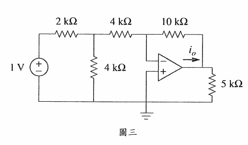 【已刪除】3. (20%)考慮圖三的理想放大器電路,求電流