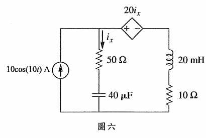 【已刪除】6.(10%)考慮圖六的交流電路,求40μF電容與20 mH電感的平均功率。