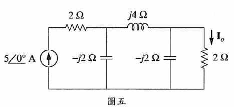 【已刪除】5.(20%)考慮圖五的交流電路,求電流I