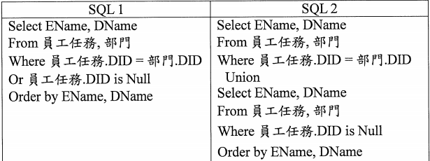 上述兩種SQL語法,查詢結果何者正確?若錯誤者,請寫出其查詢結果。(10分)